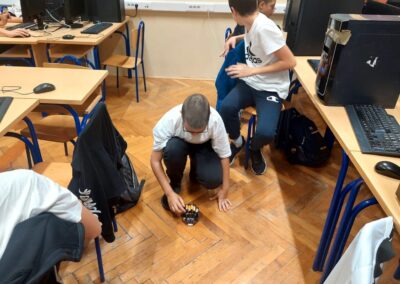Učiteljica Nataša Miškov provela je tri aktivnosti: učenici su pogledali prezentaciju o razvoju robotike i robotima u današnje vrijeme temeljenu na knjigama Roboti u medicini i Minijaturni nanoroboti dr. Gojka Nikolića, zatim su se upoznali s MaQueen robotima i način na koji se programiraju, upoznali osnovne senzore robota i programirali njihovo jednostavno kretanje. Učenici su se upoznali i s iskustvima rada s jednostavnim robotima u školi Pärnu Kuninga Tänava Põhikool u Estoniji koju je posjetila u okviru svog jobshadowinga. Dogovoren je posjet šibenskom poduzetničkom centru Trokut u kojem ćemo upoznati i druge robote, te sudjelovati u prigodnoj radionici.
