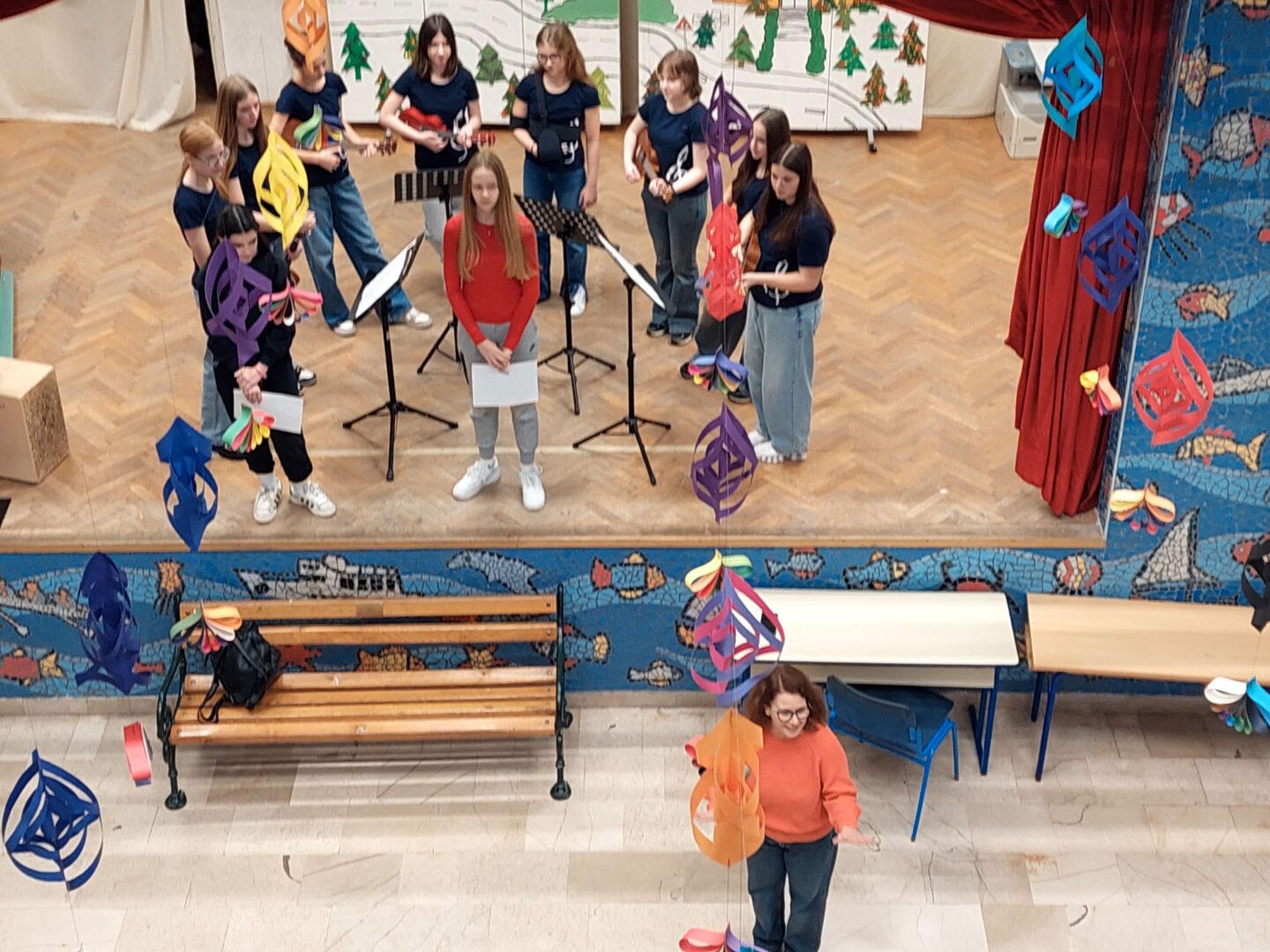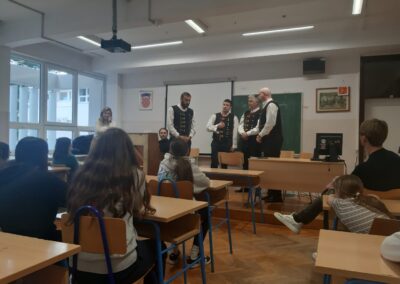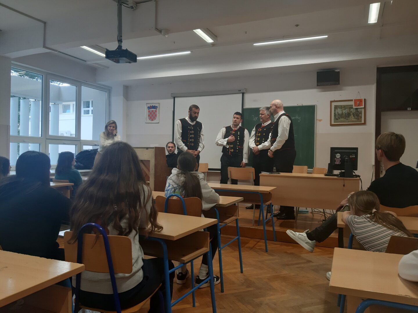 učiteljima u holu naše škole. Uživali smo u njihovoj izvedbi.