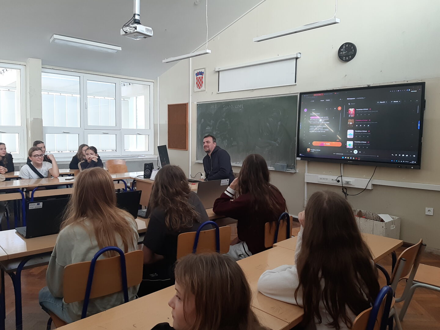 učenici i učitelji, a poslijepodne su imali radionicu stvaranja pjesme uz pomoć umjetne inteligencije u AI