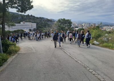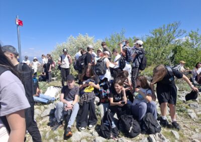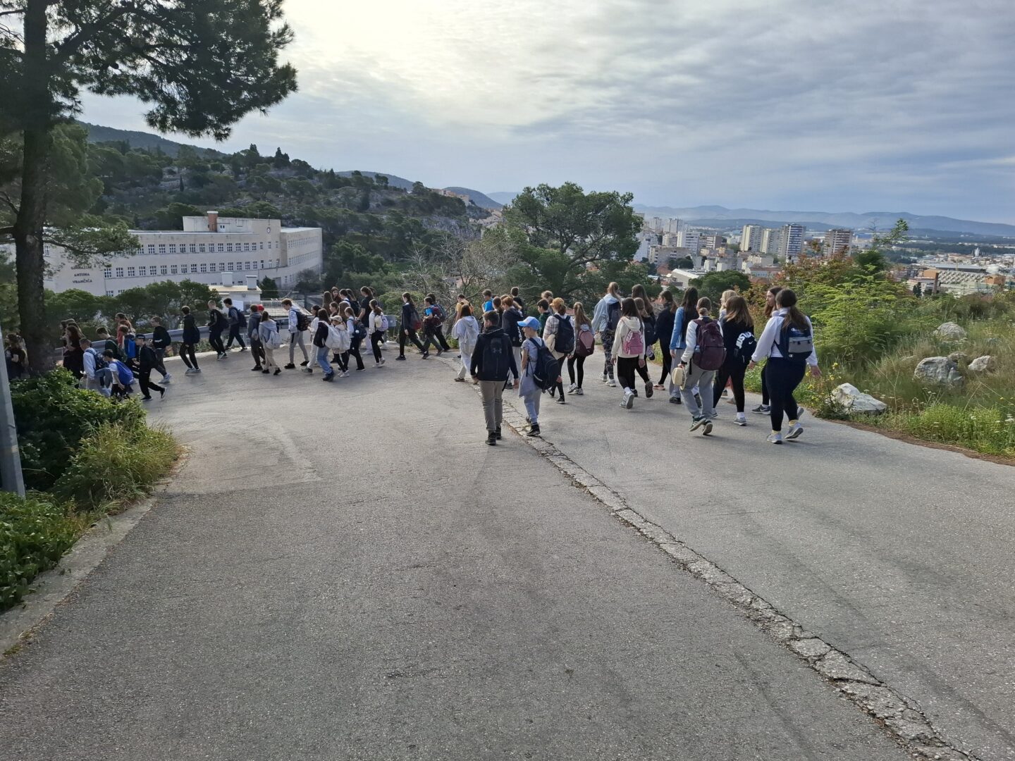Ove godine je planinarsko društvo HPD ‘Kamenar ‘ proslavilo 100 godina od dana svog osnivanja. Čitav tjedan prošao je u svečanom tonu. Kraj tjedna, subota 11.4. bio je predviđen za tradiocionalni pohod Ante Frua sa našom školom. Ove godine izbrojali smo preko 100 djece na putu. Nekoliko ih se pridružilo iz OŠ Meterize, bilo je petnaestak malih članova planinrske škole HPD ‘Stribor’, a ostalo mi iz Petra Krešimira. Hodali smo dosta, možda i petnestak kilometara. Dio učenika se ostao igrati uz planinarsku kućicu ‘Ćićo’. Drugi su se popeli na Orlovaču . Bilo je veselo i lijepo. Grijalo nas je sunce, mirisali smo mirise proljetnih trava i kadulje, smijali se i pričali. Uživali u krasnim vidicima. Igrali se . Izmorili noge i razveselili dušu. Baš kako i treba . Proslavili 100 godina ‘Kamenara’ i Dan planeta Zemlje koji uskoro slijedi. U miru , radosti i uživanju u ljepoti prirode. Ispod neba plava. Što želimo svima na Zemlji.