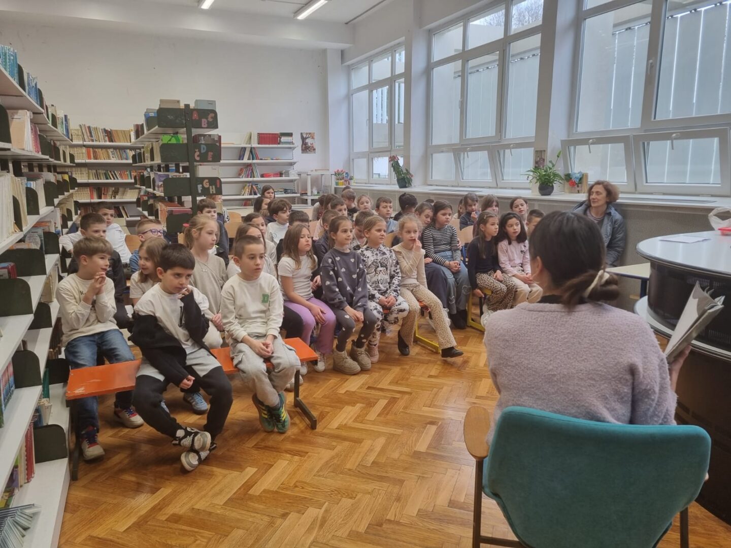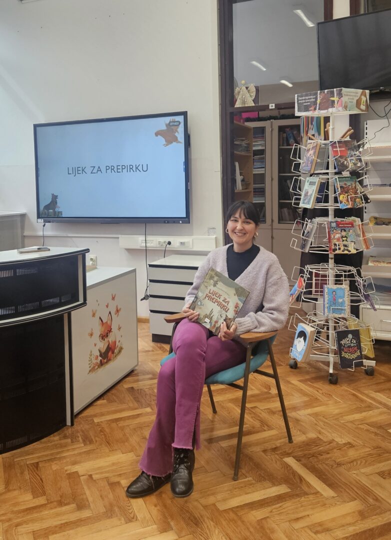 U školskoj knjižnici održan susret s autoricom Ivana Klarić‑Kukuz koja je učenicima 1.b i 1.c razreda predstavila svoju slikovnicu Lijek za prepirku.